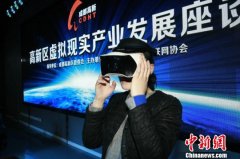 用户正在体验VR产物。王伟摄借助一个头盔设备,就可以“遨游”于神秘的太空,或“潜入”二万五千里的海底……...