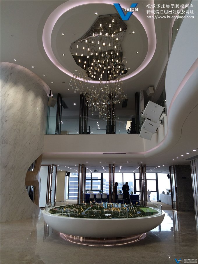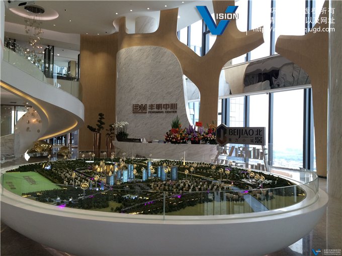 2016年3月,盈峰·丰明中心正式落成,该中心占地1.7 万平方米。在丰明中心大厅,有着视觉环球最新推出地全国首例2.5D光电沙盘,该沙盘通过光电沙盘立体投影技术将建筑群与沙盘完美地融合,把传统的二维展示方式升级为三维动态数字虚拟模式,无论是从视觉的观赏性,还是呈现的立体逼真层面,都带给人一种全新化的互动式体验感觉。